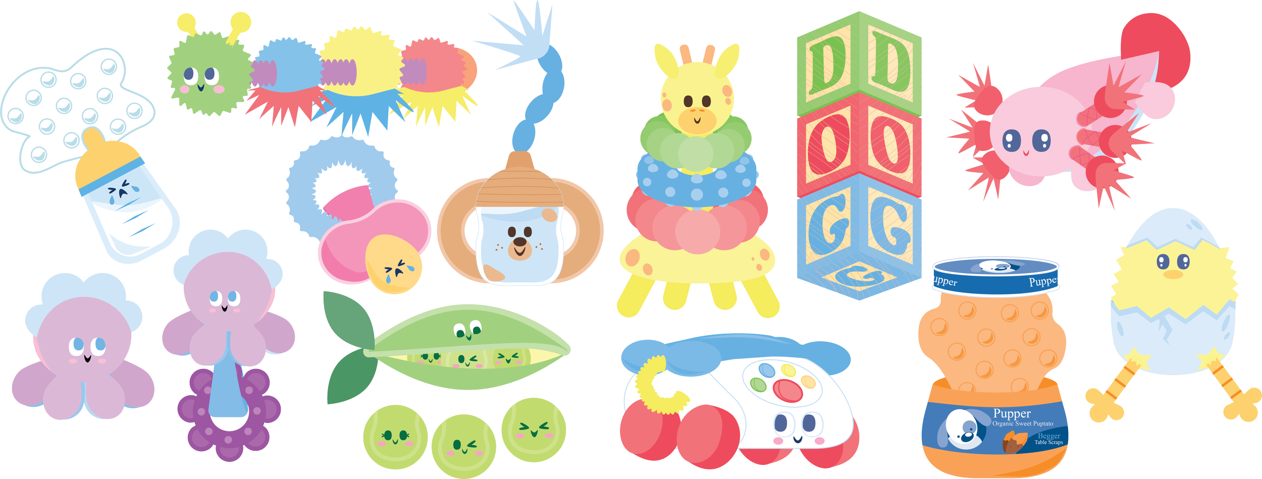 Much of the theming for the Puppy Box hearkens back to color palettes and visual motifs that relates to human babies rather than puppies, being that many people this day and age tend to treat their furry companions as more than just a pet- they’re part of the family!